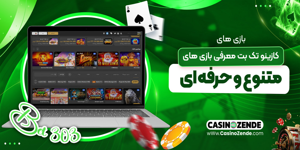تک بت یکی از معروفترین و معتبرترین سایت های شرط بندی فارسی است که تمرکز ویژه ای روی بخش کازینو آنلاین دارد. این سایت با فراهمکردن رابط کاربری روان، دسترسی سریع به بازی ها و پشتیبانی 24 ساعته به زبان فارسی، توانسته اعتماد کاربران ایرانی را به خود جلب کند. کازینو تکبت به صورت کاملاً حرفه ای طراحی شده و امکان تجربه شرط بندی زنده با دیلر واقعی را نیز فراهم میکند.